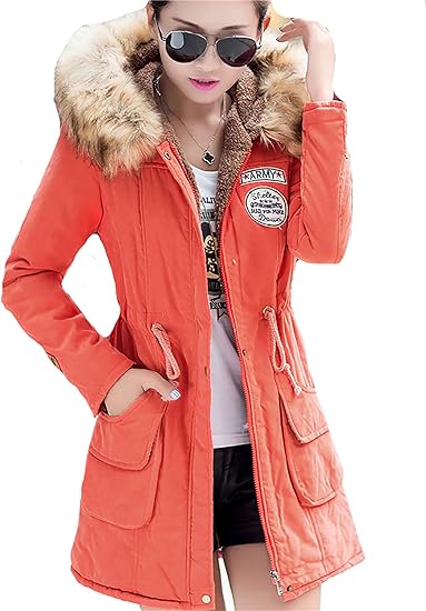Amazon ケイミ Keimi モッズコート レディース ファー付 ミディアム丈 ミリタリーコート ダウンコート ダウンジャケット 裏ボア 中綿 フード 防寒 厚手 ゆったりロング 冬物 妊婦 カーキー S オレンジ コート ジャケット 通販