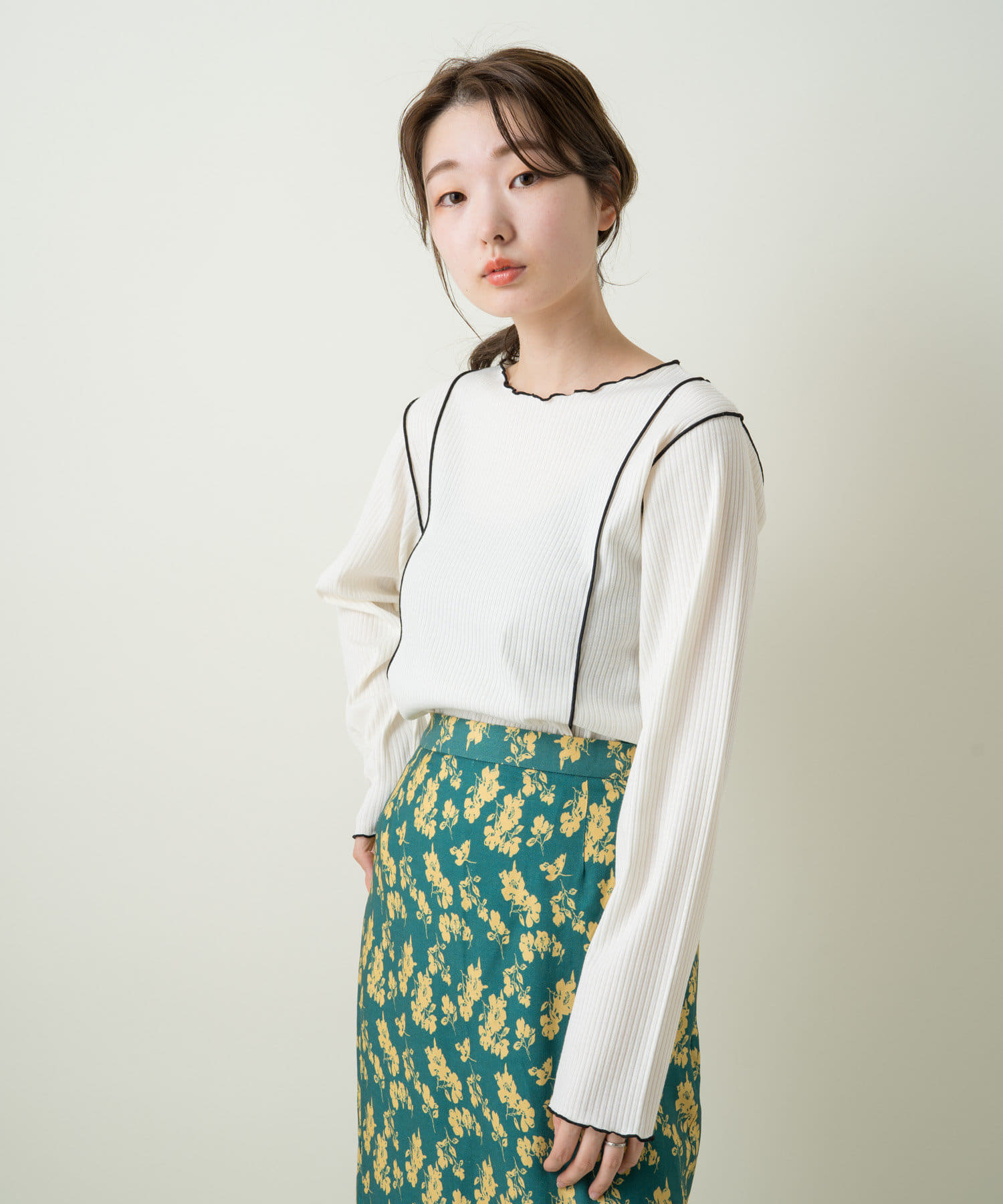 リブカットソーメロートップス さりげないメローがワンポイント トップス レディース カットソー リブ メロー 長袖 クルーネック セットアップ ベーシック シンプル Titivate ティティベイト ファッション通販リュリュモール Ryuryumall